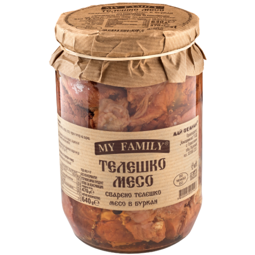 Discover the convenience and quality of MY FAMILY Horceto's Beef Boiled Meat, available in a box of 6pcs x 640g. Each jar is packed with tender veal, perfectly seasoned with salt and black pepper grains, and ready for direct consumption, making meal preparation a breeze. With a net weight of 640g and a drained weight of 470g, this high-quality beef is versatile enough to star in a variety of dishes, from a simple beef with peas to a hearty beef stew, offering a delicious base for your culinary explorations. Crafted with care from non-GMO ingredients, MY FAMILY Horceto's Beef Boiled Meat brings the authentic flavors of Bulgarian cuisine right to your kitchen, ready to enhance any meal with its gourmet taste and undeniable convenience. Enjoy the rich, satisfying flavors of premium beef, a culinary delight that promises to become a staple in your home cooking repertoire.