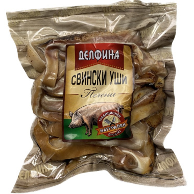 Delfina Roasted Pork Ears are a traditional Bulgarian delicacy, prepared from carefully cleaned pork ears, slow-roasted for a rich taste and tender texture. Packed in vacuum for maximum freshness, they are ideal for grilling, pan-frying, or adding to various appetisers and traditional dishes.