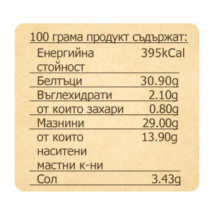 - Енергийна стойност: 1345 kJ / 324 kcal