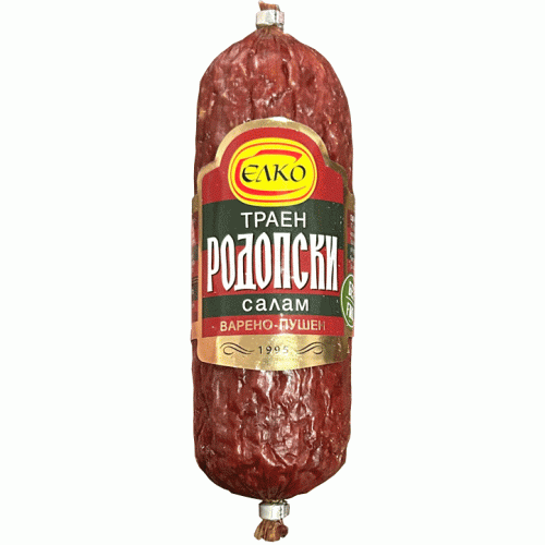 Rodopski Cooked-Smoked Salami ELKO (Vacuum-Packed) - This premium-quality cooked and smoked salami brings the authentic taste of the Rhodope region straight to your table. Made with a carefully selected blend of pork and beef, seasoned with natural spices, and expertly smoked for a deep, rich flavor. Its vacuum packaging ensures long-lasting freshness, making it perfect for sandwiches, appetizers, or as part of a charcuterie board. Ready to eat.