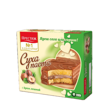 Savor the deliciously soft texture of Sponge Cakes with Hazelnut Cream by Prestige. Filled with a smooth and rich hazelnut cream. These cakes offer a perfect blend of sweetness and nutty flavor, making them an ideal snack or dessert, and perfect for pairing with your favorite hot beverage. Trust Prestige to deliver high-quality and flavorful treats that bring joy to every bite.